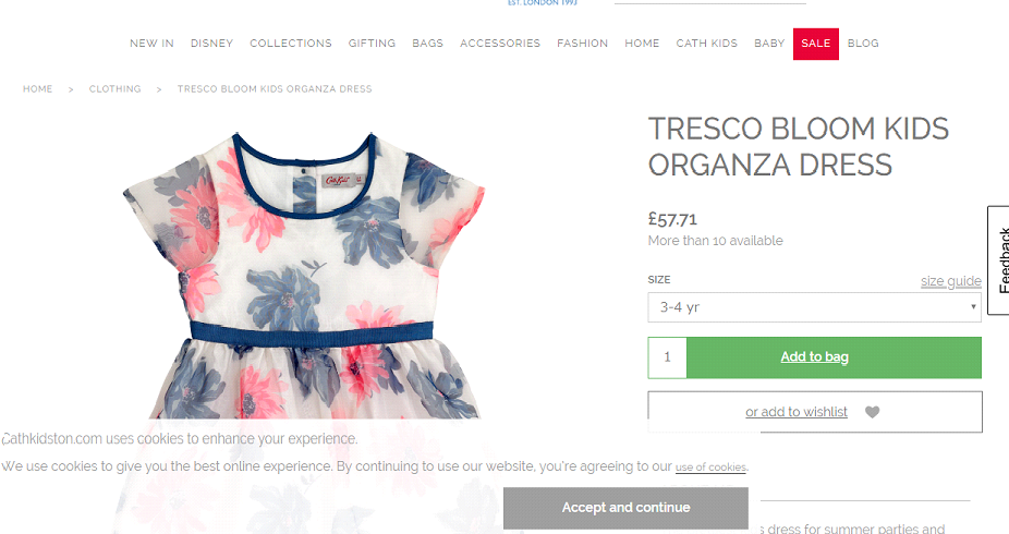 Dubliからお買い物するために、まずはDublliのサイトからCath Kidstonのサイトへ行きます。