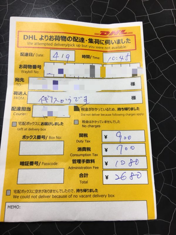 関税やら手数料やらがかかり、なんと2680円―720円=1,960円 のマイナスでした(涙)