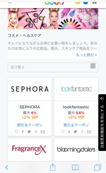 こちらは、カテゴリー別で選択した、「コスメ・ヘルスケア」サイトのトップ!