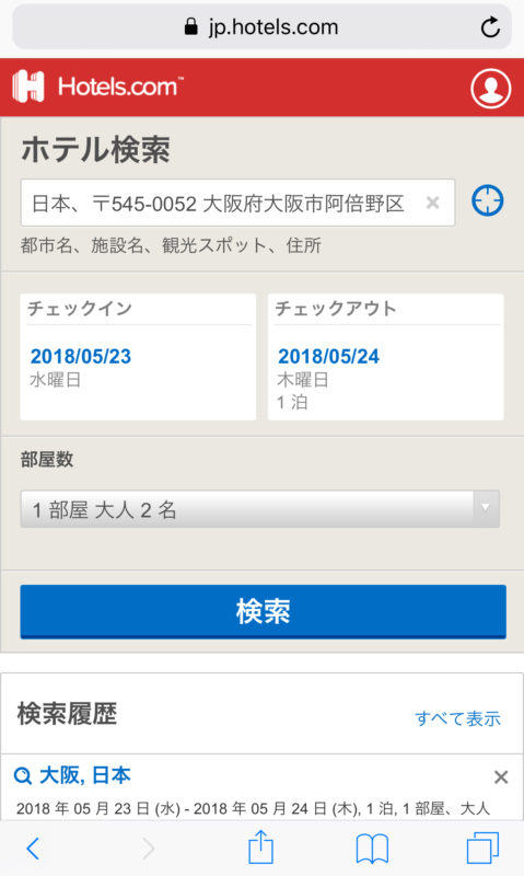例えば、「Hotels.com」で予約をするとします。