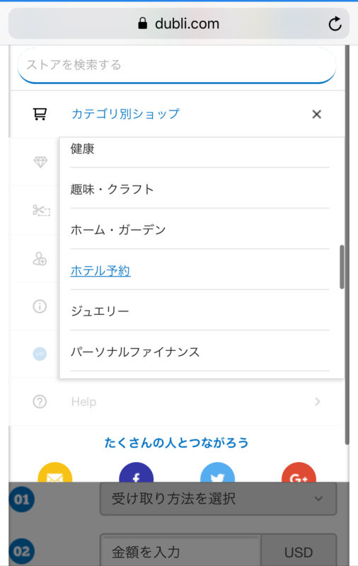 Dubli自体がお店を経営しているのでは無く、Dubliのサイトにたくさんのお店が並んでいる、