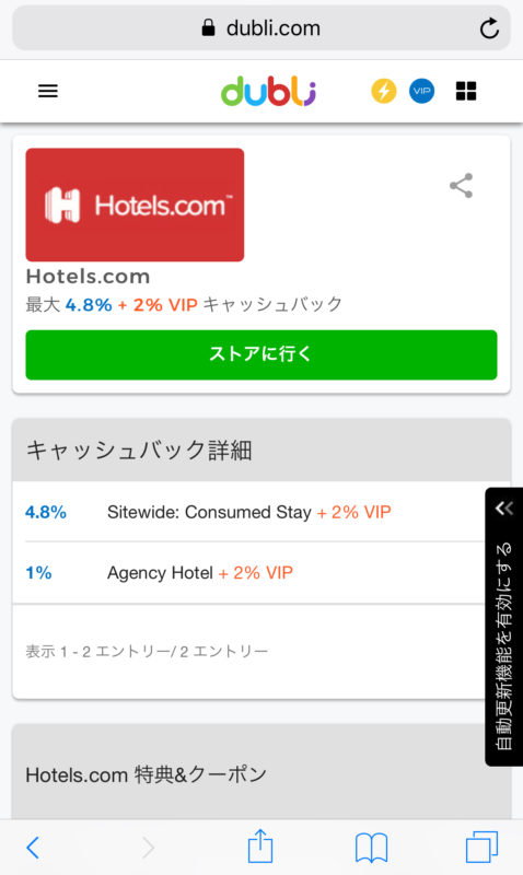 2.Dubli(キャッシュバックサイト)から予約サイトへ行って宿泊予約!